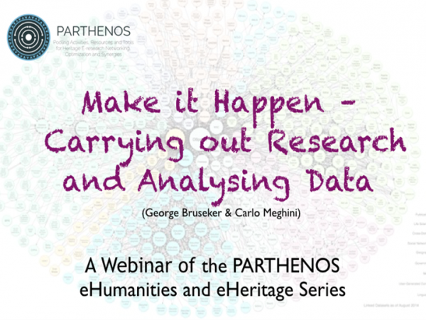The PARTHENOS webinar “Make it Happen - Carrying out Research and Analysing Data” with George Bruseker (FORTH, Greece) and Carlo Meghini (CNR, Italy) will take place on 5 April 2018.